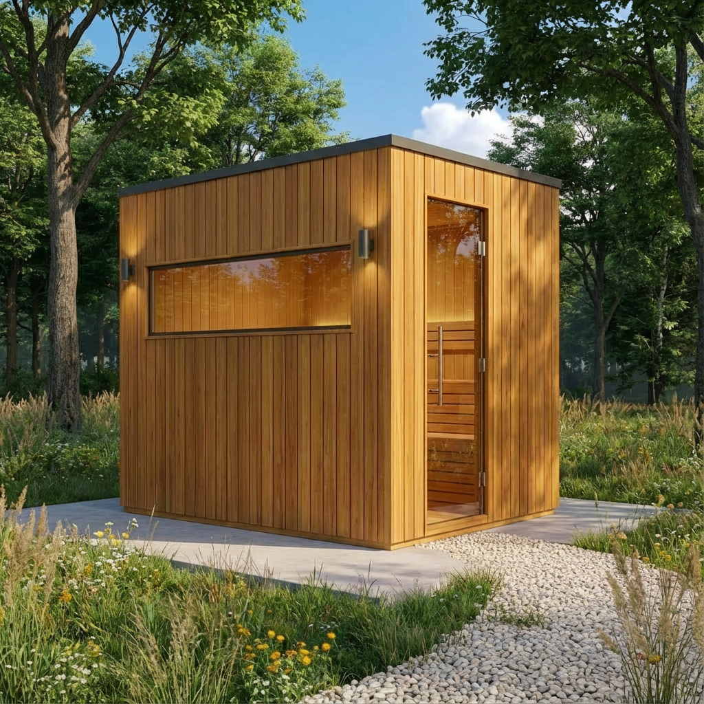 Dzięki kompaktowym wymiarom i przemyślanej konstrukcji, sauna wpasuje się w różne przestrzenie: