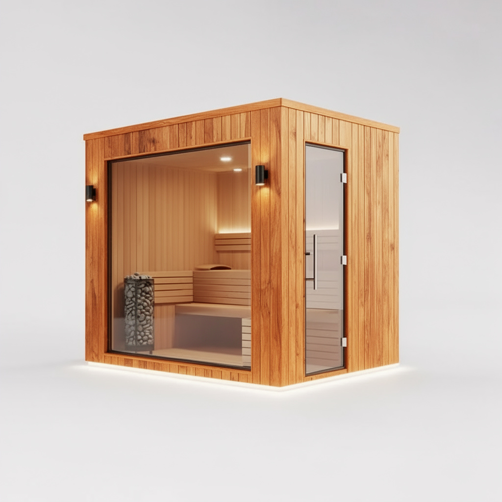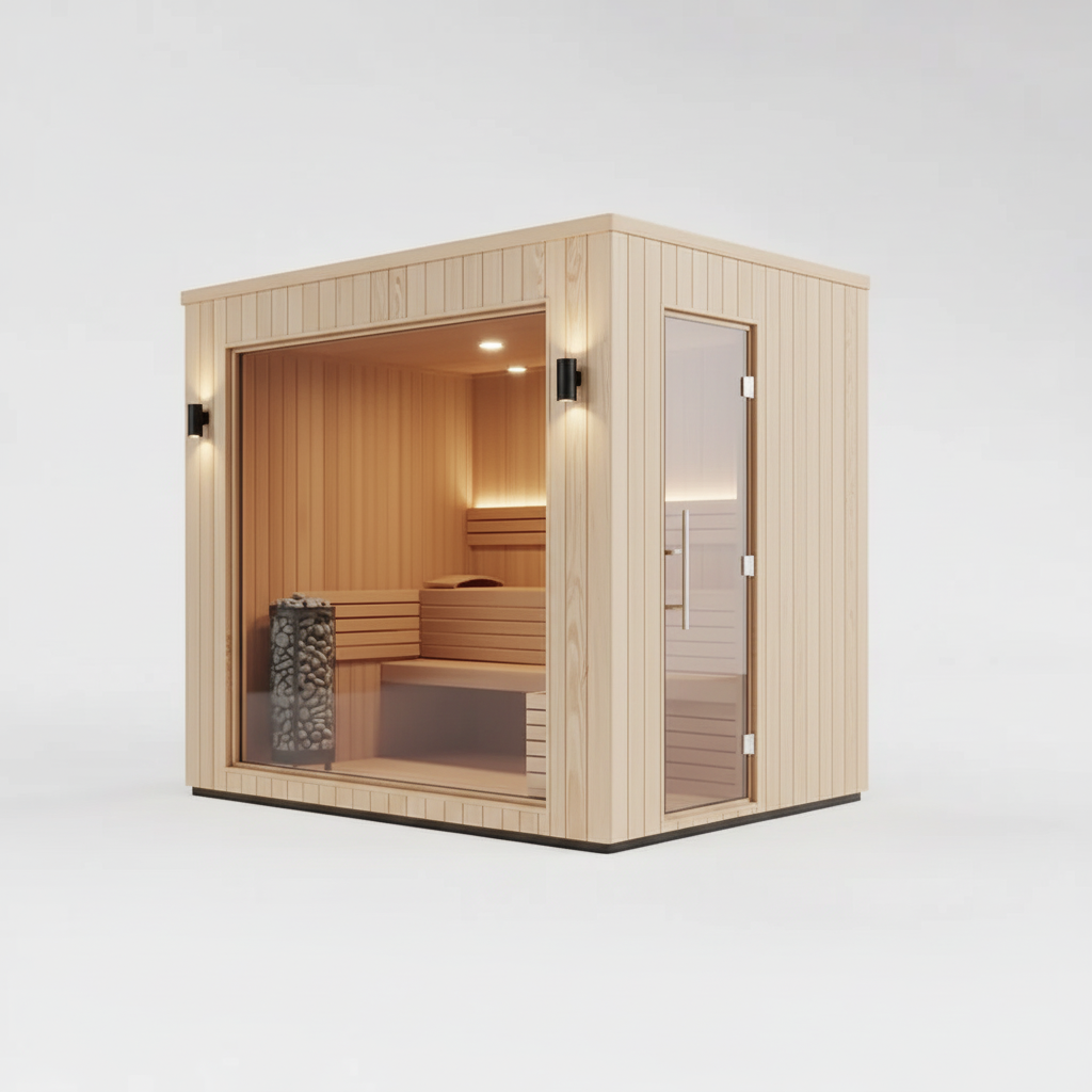 Kompaktowa, ale niezwykle funkcjonalna sauna premium, wykonana z certyfikowanego drewna świerk skandynawski C24, które gwarantuje trwałość i naturalny, przytulny klimat wnętrza. Wnętrze zaprojektowano z myślą o wygodzie – ławki rozmieszczone wzdłuż tylnej ściany pozwalają na komfortowy relaks 2–4 osobom jednocześnie.