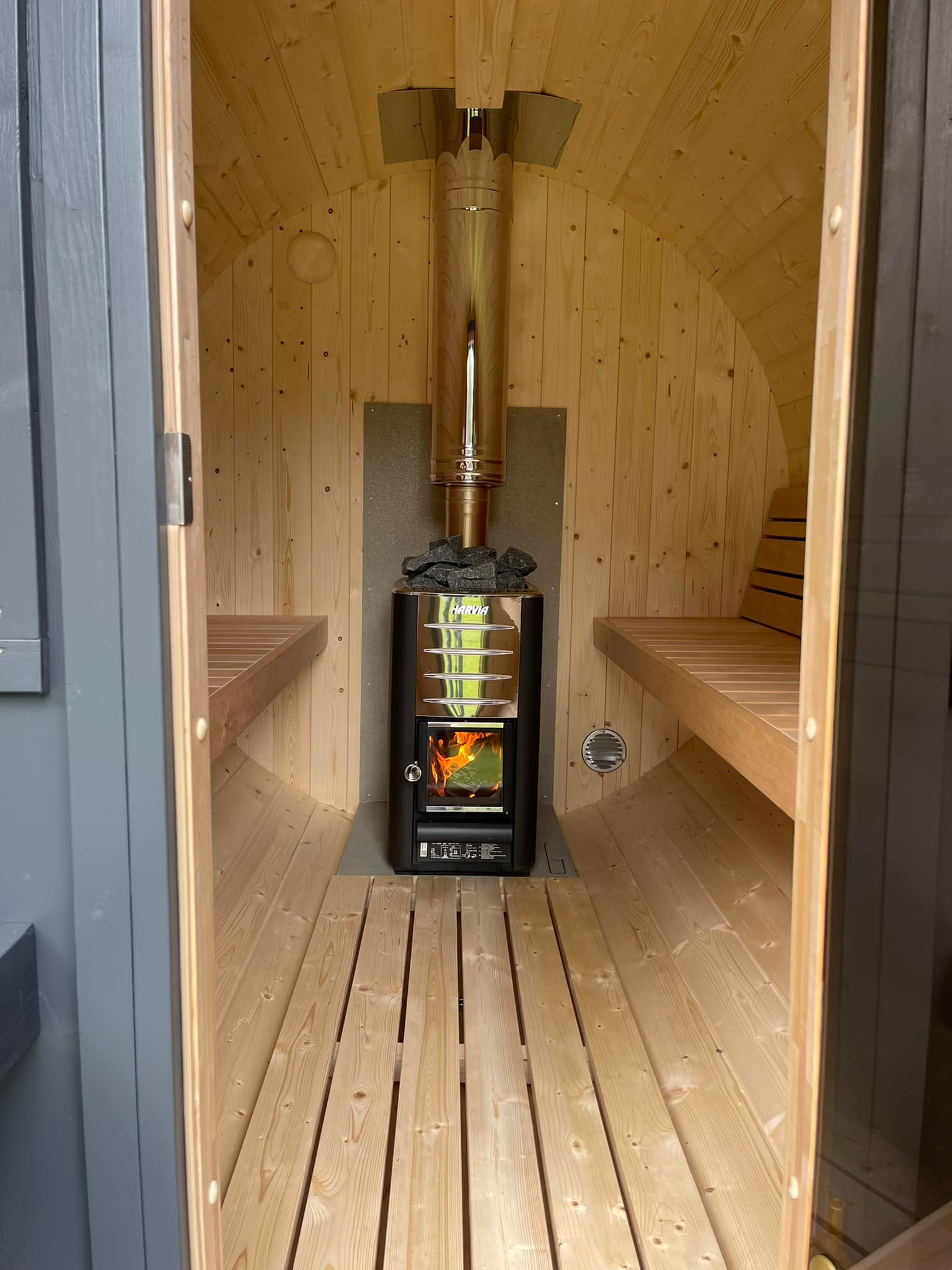Sauna mieści 3–4 osoby, co sprawia, że doskonale nadaje się dla rodzin lub grupy przyjaciół.